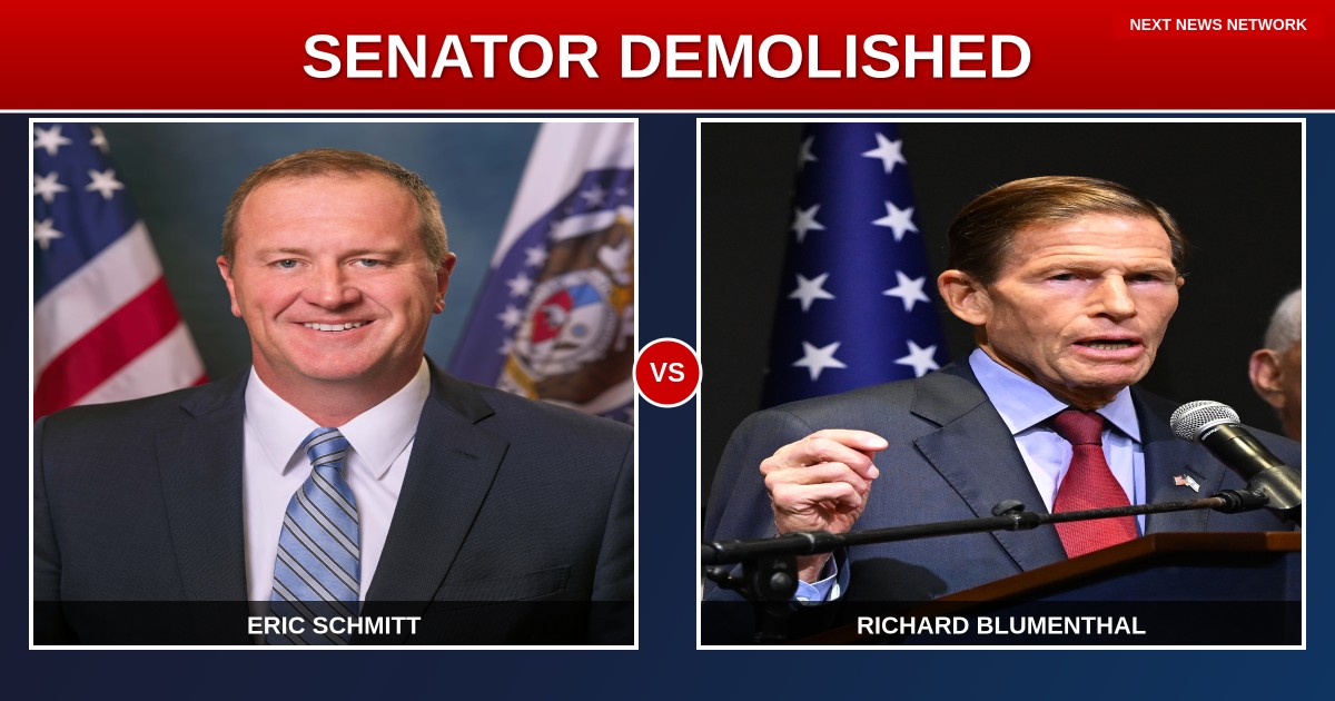 Senator Eric Schmitt delivered a blistering takedown of Democrat Richard Blumenthal after the Connecticut Senator pulled yet another cheap political stunt during a critical DHS hearing.